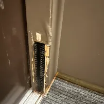 Experiência terrível! Hotel velho, abandonado. Quartos sujos, a porta do banheiro podre e quebrada, de tanta umidade. (Foto) Quarto com cheiro de mofo, cortinas velhas, mofadas e sujas.