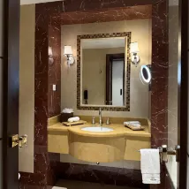 我去利雅得給兒子看病,訂了這家酒店,從豪華程度來說,很不錯,但是服務和隔音很差,說實話,我不推薦。兒子做了手術,需要一張床。他們說只有一張大床,我說:「沒問題。」最後一件事,一個多小時後,他們拿來了毯子。