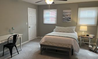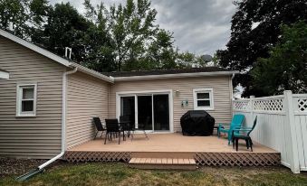 Welcome to our cozy cottage located between Devils Lake & Round Lake. A short distance from MIS, golf courses & restaurants/ bars. Public boat access to both lakes, dock available for boat on Devils during your stay. Beach/lake access on a small sandy beach area steps away from the cottage & a shared picnic table. Perfect for families, friends or couples. Private outdoor space, gas grill, fire pit, zero gravity chairs, corn hole & summer months enjoy the local farmers market.
