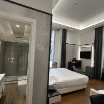 相比於其他意大利酒店,這個酒店很難得服務人員都很nice,而不是高傲或者冷漠。早餐出乎意料的好,bagel和pancake都很好吃,還有鮮榨果汁和新鮮水果。本來很忐忑因為我們行李很多,但下訂單的時候房間顯示衹有十幾平米,可是等我到了之後,我被告知升級成了一個大的三人間。我非常的開心,這個房間就在前台的隔壁。房間吊頂很高,空間很大,足夠我們放四個行李箱。本來我被告知就在一樓前台隔壁的時候我還有點不開心,因為我從來都不喜歡一樓的房間。但進去之後我還是比較滿意,謝謝。酒店裡的東西特別齊全,有牙刷、一次性拖鞋、浴帽、棉簽、香皂等等,這些在一般的歐洲酒店是不常見的。我一般不寫評價,但這裏的服務態度和其他意大利酒店形成了鮮明的對比,所以我願意為你們留下我的評價,謝謝。