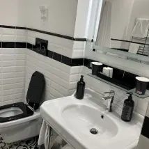 乾淨、溫馨、裝潢新穎,大廳和房間都帶有歷史建築的韻味。 飯店有電梯,工作人員非常樂於助人。 位置:從特米尼機場很容易找到和到達。 唯一要注意的是淋浴間的排水速度,非常慢,而且幾乎堵塞了。