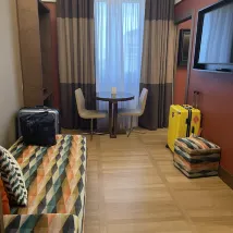 房間不乾淨,鏽跡斑斑,水壓不穩定——有時淋浴甚至會中途停止。電梯又小又老舊,連一個人和一個行李箱都裝不下。飯店只有一部電梯,而且速度很慢。房間完全沒有隔音,所以外面和隔壁房間的噪音都能聽得一清二楚。我不推薦入住這家飯店。
