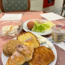 酒店位置離車站不遠,是個四星級的老酒店,原本擔心隔音不好,但出奇的安靜。房間算大,也乾淨。 早餐比較簡單,熱食只有蛋,不過也夠吃飽了!