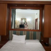 一家可恥的 2 星級飯店非法使用 4 星級飯店的頭銜。房間極其狹窄,就像老鼠籠子一樣。缺乏正常設備,例如房間裡沒有保險箱,儘管描述中提到了保險箱。很舊,需要整修,就像整棟建築、浴室一樣。沒有酒吧、沒有餐廳、沒有游泳池。地下室裡有一間昏暗的小早餐室,提供冷早餐,包括罐裝火腿、黃色起司和蛋糕。冰冷的煮雞蛋。晚上,街上會傳來極大的噪音,例如凌晨 2 點,附近的餐廳會把空玻璃瓶丟進垃圾桶,發出難以忍受的刺耳噪音。靠近火車站,這導致一些可疑人物在該地區徘徊。