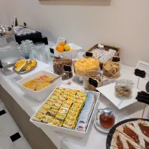 我從 2025 年 4 月 12 日住到 2025 年 4 月 25 日。他們有一個 24 小時接待台,這很好,我認為前台的一些或所有工作人員都會說英語和義大利語。 他們在後廳區域只有 1 或 2 台自動販賣機可以在半夜買零食,但我沒有使用它,因為我每天早上(早上 7 點到 10 點)都吃他們的早餐。 他們的早餐室位於前廳附近,還可以,但不是很好(作為拉斯維加斯的自助餐很棒)。 他們有冷切肉片,像是薩拉米香腸、雞肉、火腿。 他們還有起司片和麵包片,但有些看起來很硬,需要再次加熱。 他們吃了煮雞蛋、生菜和番茄片。 他們吃了甜甜圈和糕點,有的加了果凍,有的加了香草、榛果或巧克力。 他們有一些果汁,如鳳梨汁和水果汁。 我住的飯店房間是單人房,有一張薄床和一張書桌,還有一扇窗戶。 有空調。 淋浴很小,伸手洗澡很費勁,但很乾淨。 他們派了一位管家來打掃房間,但我通常告訴他們我不需要,他們敲門後就離開了。 床單潔白乾淨。 冰箱很小。 沒有保險箱可以存放東西,也沒有微波爐可以加熱食物。 總體而言,這是一家優質、乾淨的酒店。 飯店和早餐餐廳的工作人員對我來說都很樂於助人而且很友好。 這家旅館的優點是距離火車站非常近,步行不到兩分鐘即可到達火車站。 還有一些便利商店可以購買一些食物和飲料。飯店附近還有幾家餐廳和一家自助洗衣店。 我希望他們有: 1)裡面有投幣式洗衣機。 2)增加販售小吃或三明治的自動販賣機。 3)可以隨時提款的 ATM 機。