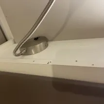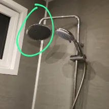 淋浴壞了。還能用,就是往下滑。你可以把它穩住,因為它一直在往下滑。你得往下扶著淋浴花灑,這樣它才能夠到你的頭。住一晚還行。如果你想吃點東西,附近有一家餐廳。好在有去市中心的售票機。