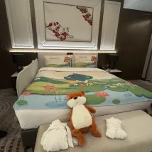 酒店工作人員服務非常貼心前台辦理入住迅速周到,很詳細的講解附近遊玩設施,管家提前聯繫備註好,這次預訂的是一個小童主題房間,小朋友非常喜歡這個房間,美中不足的就是早餐感覺不是很好,可能是假期人比較多,導致的空盤沒有及時上補菜,房間床品非常舒適,附近景色也非常好,整體感覺挺不錯,謝謝你們的服務!