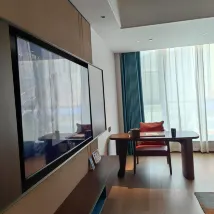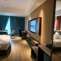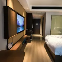 超預期的好,酒店大廳大氣,走廊走起來舒服。房間智能化,進門不用查電卡,自動開窗,衹能馬桶,選品高端大氣上檔次。停車方便,充電樁又快又便宜,還有階梯電價。