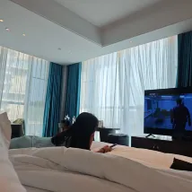 這次的酒店入住體驗真的太讓我滿意了!必須給大家分享一下! - 位置優越:酒店就在村超足球場附近,步行5分鐘就能到足球場,美食街一應俱全,吃飯、逛街、出行都超方便,完美契合我的出行需求。 - 服務貼心:從前台辦理入住時就能感受到他們的專業與熱情,不僅辦理速度快,還主動告知我酒店的各項服務。入住期間,客房服務響應迅速,有任何需求都能及時解決,真的是把客人放在了心上。 - 房間舒適:房間寬敞明亮,打掃得一塵不染,床品柔軟舒適,躺上去就像被雲朵包裹着,一覺睡到天亮,疲憊感瞬間消失。衞生間乾濕分離,洗浴用品品質也很不錯。 - 設施齊全:酒店配備了早餐區。早餐種類繁多,味道也很好,開啟元氣滿滿的一天。 這次入住完全超出我的預期,性價比超高,下次來這邊,肯定還選這家!