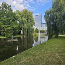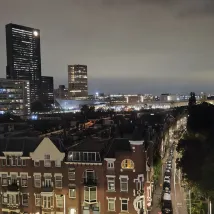 It's within walking distance of Rotterdam Central Station. That's all. The room was dimly lit and very hot. The air conditioning was broken and didn't work. The bathroom and toilet were dirty. The only nice thing was that they had free coffee and tea in the lounge. That's all.