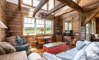 The spacious log cabin is nestled in rolling hills, covered in aspen and pine trees, on a private 35 acre lot located just 6 miles from Steamboat Lake State Park. The cabin is comfortably furnished and sleeps 10 people, featuring an open layout with vaulted ceilings, exposed wood beams, and a patio with gorgeous unobstructed views. The cozy living area has an open floor plan, complete with a wood-burning stove, hardwood floors, and a large country kitchen. Grill out on the front patio while enjoying the outdoor fire pit. Then unwind for the evening enjoying the dark wilderness; taking in the stars as the greatness of the Milky Way seems to almost be within reach.