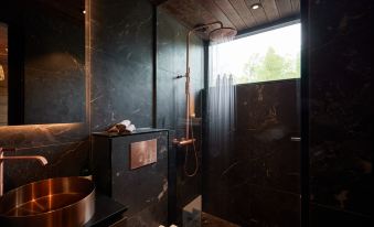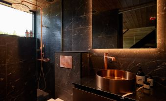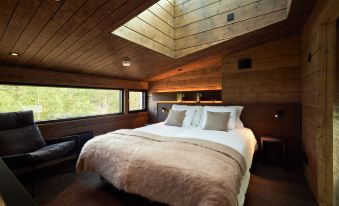The spacious villas feature a large entryway with plenty of room to store ski gear, outdoor clothes and luggage. There is also a utility room with a private washer and dryer and ironing facilities. You will also find a spacious outdoor terrace where you can warm up by the fireplace while enjoying the breathtaking views of the surrounding landscape. You may even catch a glimpse of the Aurora Borealis.