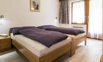 The apartment is on the groun floor and consists of a comfortable kitchen with a dishwascher and coffee machine and a living area with TV and radio. Both double bedrooms with wash-basin. A WC with bath, balconies to the south and west. Further there is a lift, a ski room, ski boot warmers and house bar available. The apartments are certified by "Q for You". The balconies on the south side, overlooking our charming garden with a fountain made of granite and the firs and pines and the many flowers invite you to linger. Equipment: coffee machine, water heater, toaster, oven, freezer, fondue set, satelite tv, blu-ray player, video library, free wi-fi, hairdryer, towel warmer, cot, children's chair, washing machine on demand. Ski boot dryer, lift, BBQ place, lawn, house bar - you won't miss anything. Additional are ski room with ski boot warmer and bar at your disposal. We offer expert consultation in summer as in winter to make your holiday a success.
