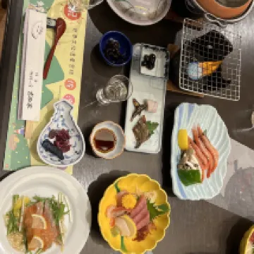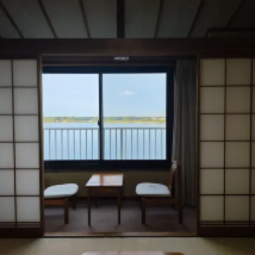 方便的旅遊地點靠近碼頭有寬闊的停車場。 接待員很有禮貌,服務很好,會帶你去房間。 日式房間寬敞乾淨,浴室和淋浴間是分開的。有一個辦公區,可以坐下來欣賞風景。 有2個溫泉,一樓和屋頂。晚上幾乎沒有人。您可以使用該服務。預訂含早餐和晚餐。食物非常美味。 性價比很高,推薦這家飯店。