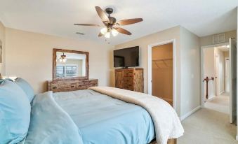 - Bedroom 2 (Upstairs): King bed, dresser, Smart TV