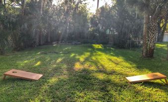 Newly renovated St. Augustine bungalow that is close to everything downtown! NEW arcade machine just installed. Our very modern beachy furnishings will be the perfect place for you to relax and unwind. Walk to the shops, restaurants, castle, and everything else St. Augustine has to offer when you’re ready to explore. Lots of houses say they are walkable here, but we really are, with an 84 walkability score! Our place has plenty of private off-street parking with a gate for extra privacy. Play cornhole or grill in our huge backyard with a nice fire pit, surrounded by oak and palm trees. Drink coffee from our stocked Keurig, or have a craft beer in the new brewery across the street. There is a free community pool/park a few blocks away for cooling off or entertaining the kids, and we also have a Pack n Play at the house. Free EV charging. We are also located on the historic Freedom Trail. Amazing location in one of the nations best cities!About pets:Pets allowed.About checkOut:Check out before 10:00 AM.About children:Children allowed: ages 0-17.About checkIn:Check in after 4:00 PM.About smoking:Smoking is not permitted.About minBookingAge:Minimum age to rent: 21.About events:Events allowed.