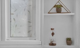- Thoughtfully curated with vintage charm, wood-style flooring, and warm, welcoming décor.