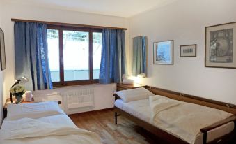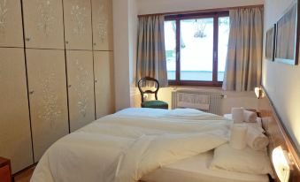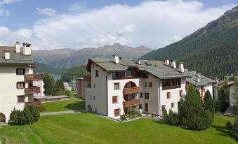 St. Moritz Bad: Comfortable apartment house "Chesa Arlas", 4 storeys, built in 1965. In a sunny, elevated position in the residential district, 800 m from the lake, 1.4 km from the skiing area. In the house: lift, central heating system, washing machine, tumble dryer (for shared use, extra). In Winter: please take snow chains, 4x4 car recommended in winter. Steep footpath to the house. Single garage at the house. Shop 450 m, supermarket 400 m, restaurant 400 m, bar 400 m, bakery 450 m, café 450 m, bicycle rental 550 m, bus stop "St Moritz Bad, Via Salet", railway station 2 km, indoor swimming pool 1 km, thermal baths "Heilbadzentrum St. Moritz" 1.2 km, lake St. Moritzer See 800 m. Golf course (18 hole) 7.3 km, surf school 5.7 km, tennis 1.5 km, indoor tennis centre 1.5 km, minigolf 1 km, riding stable 2.1 km, walking paths from the house 800 m, cycle lane 1 km, cable car 1.4 km, ski lift 1.4 km, slopes 1.4 km, ski rental 800 m, ski bus stop 400 m, ski school 1.6 km, children's ski school 1.6 km, sled run 5.6 km, cross country ski track 1 km, ice rink 750 m, children's playground 1.2 km. Nearby attractions: Segantini Museum 1.7 km, Engadiner Museum 800 m, Mili Weber-Haus 2.9 km, Olympia Bob Run mit Museum 2.2 km, Nietzsche Museum in Sils-Maria 10 km. Well-known ski regions can easily be reached: Corviglia Piz Nair 1.4 km, Corvatsch - Furtschellas 7 km, Diavolezza - Lagalb 19.7 km. Well-known lakes can easily be reached: St. Moritzer See 800 m, Silvaplaner See 5.7 km, Silser See 10 km. Hiking paths: Stazerwald & Stazersee, Corviglia Piz Nair, Muottas Muragl. The keys‘ handover takes place by the agency Interhome in St. Moritz Bad. "Chesa Arlas A1", 3-room apartment 70 m2 on 1st floor. Practical and cosy furnishings: living/dining room with TV (flat screen), hi-fi system. Exit to the balcony. 1 room, window onto the courtyard with 1 double bed (2 x 90 cm, length 200 cm). 1 room, window onto the courtyard with 2 beds (90 cm, length 200 cm). Small kitchen (oven, dishwasher, 4 ceramic glass hob hotplates, toaster, kettle, electric coffee machine, Capsules for coffee machine (Nespresso) extra). Bath/WC. Heating. Parquet floors. Balcony furniture (2). Very beautiful panoramic view of the mountains and the countryside. Facilities: iron, hair dryer. Internet (WiFi, free). Garage space n A1 on the property, height 190 cm, width 210 cm. Please note: suitable for families. Non-smokers only, parking space for small car only. Maximum 1 small pet/ dog allowed.