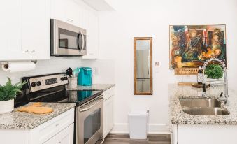 無論您是躺在舒適的沙發上看電視,還是在溫暖的燭光下與伴侶在餐桌旁享用一杯葡萄酒,您都可以在每個單元內享受設備齊全的廚房帶來的舒適。我們設有私人門控的庭院為孩子們提供安全愉快的空間,無論是閱讀、玩投擲沙包遊戲,還是簡單地放鬆身心。在遊覽聖彼得堡的景點一天后,您可以在我們庭院裡享受燒烤的樂趣,在明亮的戶外燈光下享受佛羅里達的樂趣。與朋友圍坐在寬大的野餐桌旁用餐,在私人露台上品嚐一杯葡萄酒,在舒適的記憶海綿床墊上酣然入睡,夢想著明天在聖彼得堡的冒險之旅。