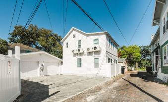 Indulge in the comfort of each unit's fully equipped kitchen, whether you're unwinding on the comfy sofa watching TV or sharing a glass of wine at the table with your partner under the warm candlelight. Our private gated yard ensures a safe and enjoyable space for children, whether reading, playing cornhole, or simply relaxing. After a day exploring St. Petersburg's attractions, embrace Florida fun in our yard with a barbecue, illuminated by perfectly lit outdoor lighting. Dine with friends around large picnic tables, enjoy a glass of wine on your private deck, and fall asleep on a cozy memory foam mattress, dreaming of tomorrow's adventures in St. Pete.