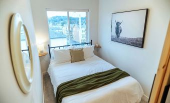 Downstairs, you'll find a spacious and modern kitchen that is fully equipped with everything you need to cook. The open-concept living room features a comfortable couch, a large TV, dining area, and plenty of natural light. The garage features a game room with a large TV, couch, board games, and other activities for a family night. There is also a half bathroom on this level. The deck offers city views and spectacular sunsets!