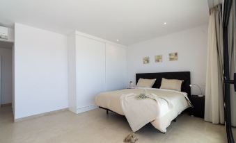 There are two large bedrooms with king-size beds (1.80 x 2.00 m) and two additional bedrooms, each with two single beds; one of each type of bedroom per floor. One of the large bedrooms has a sofa bed, allowing the house to accommodate ten guests. Each room has a well-equipped bathroom with a walk-in rain shower; two bathrooms also have a bathtub. Glass sliding doors provide access to the terraces, and from the bed, each bedroom offers a spectacular view of the surroundings. Waking up in this villa is amazing!