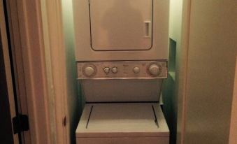 There is a new stack-able washer and dryer to do your laundry. (So pack light.) Enjoy your own deck with two lounge chairs to enjoy sun bathing or your morning coffee. There is a out door kitchen and island with additional table and chairs to enjoy the BBQ'er. (please keep in mind the out door kitchen is in a common area to be shared with the main house.)