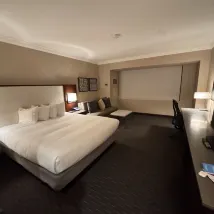 Location is superb just don’t go out late at night. Water could have been provided in the room. Lightning could be enhanced in the spacious room as well. Staff members and nice and efficient.