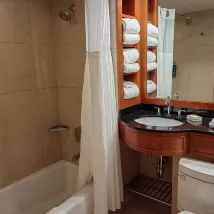 Perfect location. Good service - my room was ready for me early. Love that Big Bus picks up and drops off right here. I must say the bathroom was kind of weird. The floor was slanted and the sink was a very weird shape.