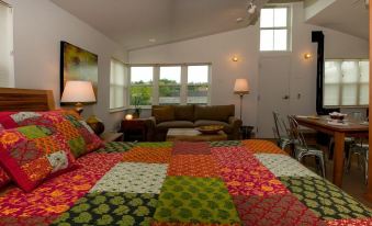Excellent location! Room included everything we needed, fully stocked kitchenette, duo garbage/recycling can, decent shower head and load/unload parking at the door, with plenty of free parking a short block away.The room is located over a very cool art studio, Forest Ceramic. Spoke to the owner, from Bulgaria, ended up buying several pieces, to remember our trip to Orcas Island. The weather app threatened rain, but the sun was out both Saturday & Sunday!