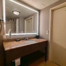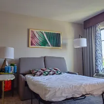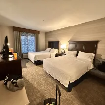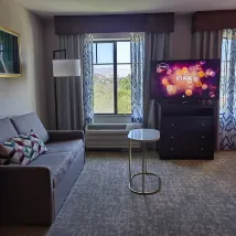 酒店離小鎮中心不遠(但還是要開車);房間空間大,梳化床拉開也不嫌狹小,衞生間不小挺乾淨的,還有微波爐;服務人員挺勤快的,晚上回酒店時看到還在打掃衞生。