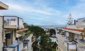 Very comfortable residence, 4 storeys. In the centre of Sanremo 6 km from the centre of Bordighera, 6 km from the centre of Riva Ligure, in a central position, 200 m from the sea. For shared use: swimming pool (50 x 25 m, depth 100 - 180 cm, seasonal availability: 15.Jun. - 15.Sep.) with salt water. Outdoor shower. In the house: lift. Public parking 200 m on the road. Shop 300 m, supermarket 200 m, restaurant 50 m, bar 20 m, bicycle rental 200 m, bus stop "Su strada direzione Genova" 140 m, railway station 100 m, sandy beach 200 m. Marina 300 m, cycle lane 50 m. Nearby attractions: Villa Nobel 100 m, Piazza Bresca 900 m, Teatro Ariston 800 m, Casino 1.2 km. Please note: Loading and unloading of baggage is possible at the holiday house. Obligation to wear bathing caps. "Mediterranee", 1-room apartment 40 m2. Modern and tasteful furnishings: living/dining room with 1 double wall-trunk bed (160 cm, length 200 cm). Exit to the balcony. Kitchenette (mini-oven, toaster, kettle). Shower/bidet/WC. Air-conditioning, forced-air heating. Balcony 4 m2. Balcony furniture. Very beautiful view of the sea and the resort. Facilities: washing machine, hair dryer. Internet (WiFi, free). IT008055B4JNGULYC2