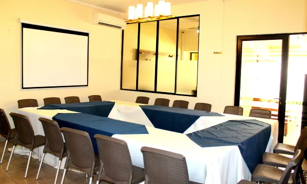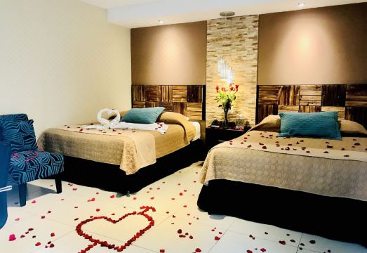 Pareciera un hostal, pero brindan servicio de lavandería, tienen piscina muy limpia, 2 salas de estar, jardínes y varias mesas para comer al aire libre o en terrazas techadas. Las instalaciones están bien, no son lujosas pero sí comodas. Mi esposa y yo nos quedamos en la habitación 502 y no tenia smart tv, solo led; tiene una refrigeradora para bebidas y cosas pequeñas, un closet y una pequeña mesa de vidrio con lámpara para estudiar o trabajar. En general, la relación precio calidad me pareció buena. Tuve una grata experiencia. El lugar es muy tranquilo y el desayuno es bieno también (va incluido en el precio).