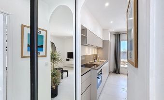 Near beach and port, renovated T2 sea view apartment with large terrace and private parking space
