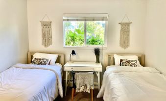 This 2 bed / 2 bath 1100 sq ft cottage is ideal for WFH, one or two couples, and family with up to two kids. Master bedroom has Nectar memory foam king size bed with en suite bathroom. Second bedroom has two high end twin XLs beds. Living room has a full sized sleeper sofa.