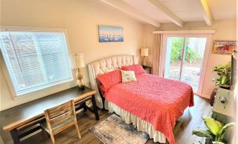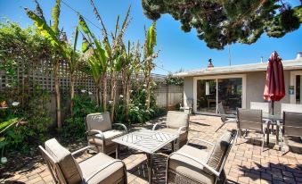 This cozy home has three bedrooms, steps to Pacific Ocean and can accommodate up to 6 people. Great lush backyard for gatherings and bbq. All mattresses, pillows and bedding are newer. One bedroom has a Queen-sized bed, flat screen TV, large work desk and a sliding glass door access to the backyard(seasonally let the sounds of the rolling ocean waves lull you to sleep and greet you each morning!). The second is the Master Bedroom has a King bed with a twin daybed, attached bathroom with a shower. The third bedroom has one queen bed and one twin bed.About pets:Pets allowed: dogs less than 50 lbs per pet (limit one pet total).About children:Children allowed: ages 0-17.About customRules:No Loud Music or Parties, if you bring your dog pl.*Your pet may NEVER be left alone, either in the.About smoking:Smoking is not permitted.About minBookingAge:Minimum age to rent: 32.About events:No events allowed.PLEASE NO PARTIES or LOUD MUSIC.