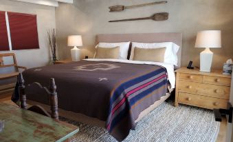 這座迷人的歷史小木屋位於聖達菲老城區的中心地帶。它保留了聖達菲的所有特色,包括基瓦式壁爐、手工抹灰的灰泥牆、木質天花板和當地藝術品,並結合了空調、洗衣機/烘乾機一體式洗衣機和全新廚房等現代化便利設施。