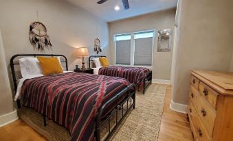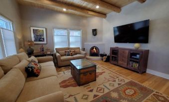 寬敞的起居和戶外空間也使這座小木屋獨具特色。坐在前廊,您可以欣賞花園美景,彷彿置身於古雅的唐·加斯帕街區;而僻靜的後院則是放鬆身心的理想場所。如果您準備外出探險,著名的聖達菲廣場距離這裡僅七個街區,而州議會大廈距離這裡也僅一個街區。屋主是聖達菲本地人,就住在街對面,很樂意與您分享實用訊息,或讓您享受私密空間。