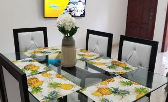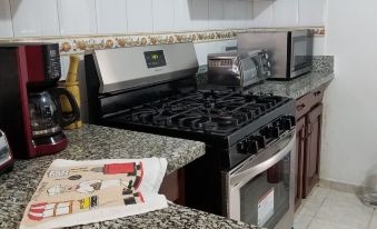 kitchen with all the utensils and equipment to prepare your meals, modern refrigerator, microwave, electric coffee maker among other things.About pets:No pets allowed.About checkOut:Check out before 11:00 AM.About children:Children allowed: ages 0-17.About checkIn:Check in after 3:00 PM.About smoking:Smoking is not permitted.About minBookingAge:Minimum age to rent: 18.About events:No events allowed.