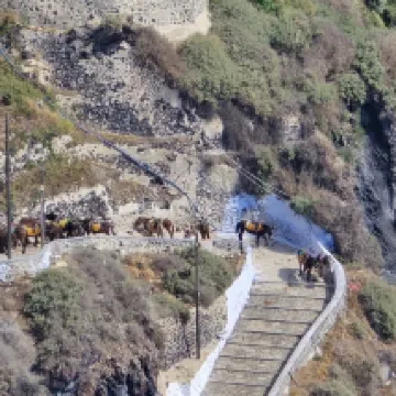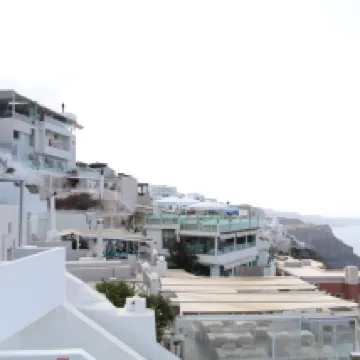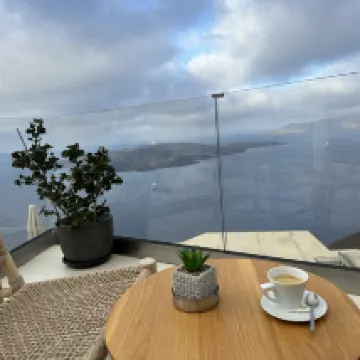 Physics. Undoubtedly the property is facing the Caldera Sea, or the Aegean sea, making it Instagram appealing. However be prepared to climb the 80 narrow steps stairsway to reach the exit. Your choice.