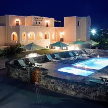 酒店非常靠近市中心,維護得很好,房間寬敞,位置優越,如果您願意,您可以步行前往費拉(路是上坡......但就像整個島一樣)。那個女孩(我想是主人)非常友善,她解釋了關於島上的一切,組織接送,你可以直接向她詢問行程和車輛租賃。他們有一個非常舒適的游泳池,始終保持乾淨。我們住了兩晚,為了方便起見,我們添加了早餐(每人 10 歐元),您可以選擇甜味和鹹味,她會在您想要的時間為您準備好餐桌。如果你住一晚還不錯,如果你住一周吃早餐我會找別的東西,有很多糕點店和咖啡館。 然而,我會推薦一家物美價廉的飯店。