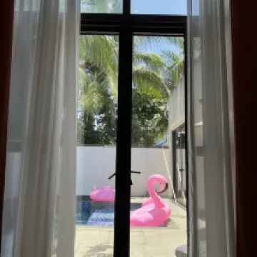 安靜私密:別墅位於海棠灣較靜謐區域,遠離主幹道喧囂,周邊綠植環繞,晚間僅有輕柔風聲,睡眠體驗極佳,適合想遠離人羣享受獨處的旅客。 •性價比突出:對比同區域別墅,價格更親民,房間寬敞整潔,配套廚房、客廳等設施齊全,家庭或朋友結伴入住分攤費用後更划算,適合預算有限但追求舒適感的遊客。 • 小小遺憾:本次入住發現泳池暫未開放(可能因維護或季節原因),期待夏季來臨時能體驗戲水樂趣,建議提前諮詢管家確認泳池開放情況。 總體而言,適合喜歡安靜、注重性價比的遊客,若對泳池無硬性需求,是個性價比較高的選擇~
