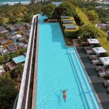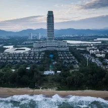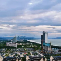 在這個酒店隔壁的海棠費爾蒙酒店開會,發現一牆之隔的這棟樓很顯眼,259米,是三亞最高的建築嗎?!這棟樓的低樓層是瑰麗酒店,高層被五六家酒店公寓包了。我住的這家還不錯,給我升級二室一廳海景房,衹要167元一天,因為是淡季,體驗感很不錯。有冰箱微波爐洗碗機小廚房,還在床上九看到了海景。感覺很好,給五分了