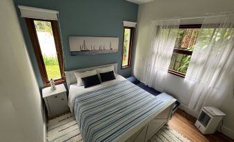 The spacious house covers 3,767 sq ft with 5 suites, two of which include a whirlpool bath, a fireplace, a toy library, a playground, high-speed internet, and a Smart TV.