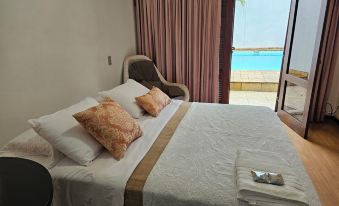 Facing the pool, comfortably accommodates up to 2 people; located 5 minutes from Congonhas airport and one block from the LATAM training center; close to restaurants, gyms, supermarkets, and bakeries.