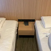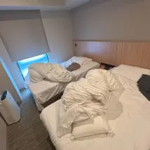 雙床房比我預想的要大一些,因為行李箱還能打開。我喜歡浴室和浴室分開的設計。雖然公共浴室有點擁擠(很小),但設施齊全,這算是一大亮點。而且,這是我這次住過的唯一一家有電視可以觀看YouTube和Netflix的飯店。總而言之,我強烈推薦!