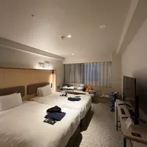 酒店位於JR札幌站西口步行3分鐘處,地理位置優越,距離大丸百貨等購物商場較近,便利性極佳。客房面積在同類酒店中較為寬敞,配備免費Wi-Fi、保險箱及舒適淋浴設施。行李寄存會主動放入房間。性價比超高,適合短途旅行,尤其推薦給需頻繁使用JR線路的旅客。