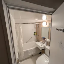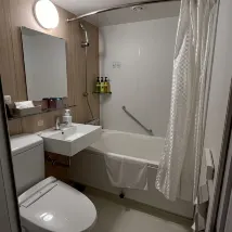 位置:酒店位置很不錯,JR札幌站按West Gate指示牌,從North Exit出站,出口左轉直行100米左右即可看到酒店,馬路對面堂吉訶德,附近就是大丸百貨和大型商場,bic camera及札幌塔步行10-15分鐘的腳程,非常方便 隔音:房間雖朝向鐵軌,但隔音不錯,沒有受到影響。 早餐:在地下一樓,餐廳晚上是酒吧,色調有些昏暗。早餐種類不算多,但基本的配備還是有的,海鮮飯、熱食、冷食、色拉、水果和麪包等,總體還是ok的。 房間大小:很合適,兩衹28寸的箱子綽綽有餘,可惜洗衞是一體的,早上容易“打架”[笑哭]。wifi連接順暢,房內提供兩瓶飲用水免費。 服務:酒店行李寄存也很方便,到達時還未到辦理入住的時間,後續辦理時行李已經幫忙送至房間了,大堂有免費咖啡,房間內有提供一次性牙刷,大堂也備有茶包、乳液、梳子等,供住店客人自取。 ❤️總體挺滿意的一家酒店,各方便都比較便捷,2人share一下房費,性價比還是不錯的[笑臉]。