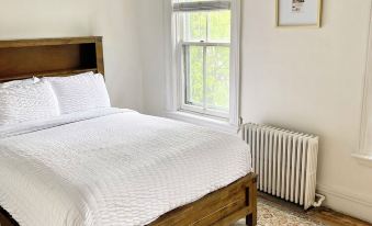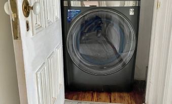 Enjoy historical details complemented by modern comforts: a large porch, bay windows that flood the space with natural light, new in-unit mini-split air conditioner, new in-unit washer/dryer, a 55-inch smart TV, and high-speed Wi-Fi (over 100 Mbps).