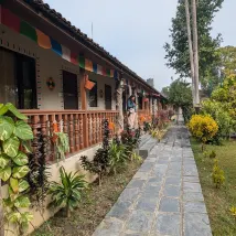 Una experiencia inolvidable, muy recomendable. El gerente fue muy atento y servicial en todo momento. Tuvimos un problema con las motos en las que llegamos y estuvo muy pendiente de ayudarnos a solucionar el problema poniéndose en contacto con un mecánico para que viniese y llevándonos incluso al taller con sus vehículos. Nos alojamos en unas casetas/bungalow espaciosos con buena higiene, un gran baño y terrazas individuales. Disponíamos tanto de AC como de un ventilador de techo lo que es muy de agradecer. Dispone de piscina con un espacio para niños pequeños. La comida que ofrecen pese no ser excesivamente variada, cumple bien su función con diversidad entre comida típica de Nepal y europea. Las actividades son a un precio competitivo y con variedad, el guía que nos acompañó en las actividades, Hemantha, nos hizo pasar muy buenos ratos con humor y datos curiosos de lo que nos iba enseñando y encontrando. No dudaría en volver a repetir, y volvería en otra época para vivir la experiencia y espero que vuelva a coincidir con ellos.